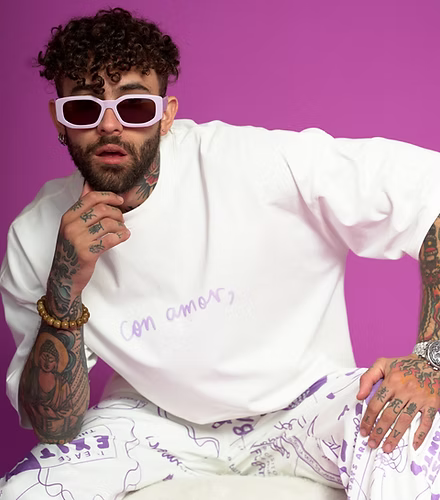 Camiseta oversize color crema estampado morado