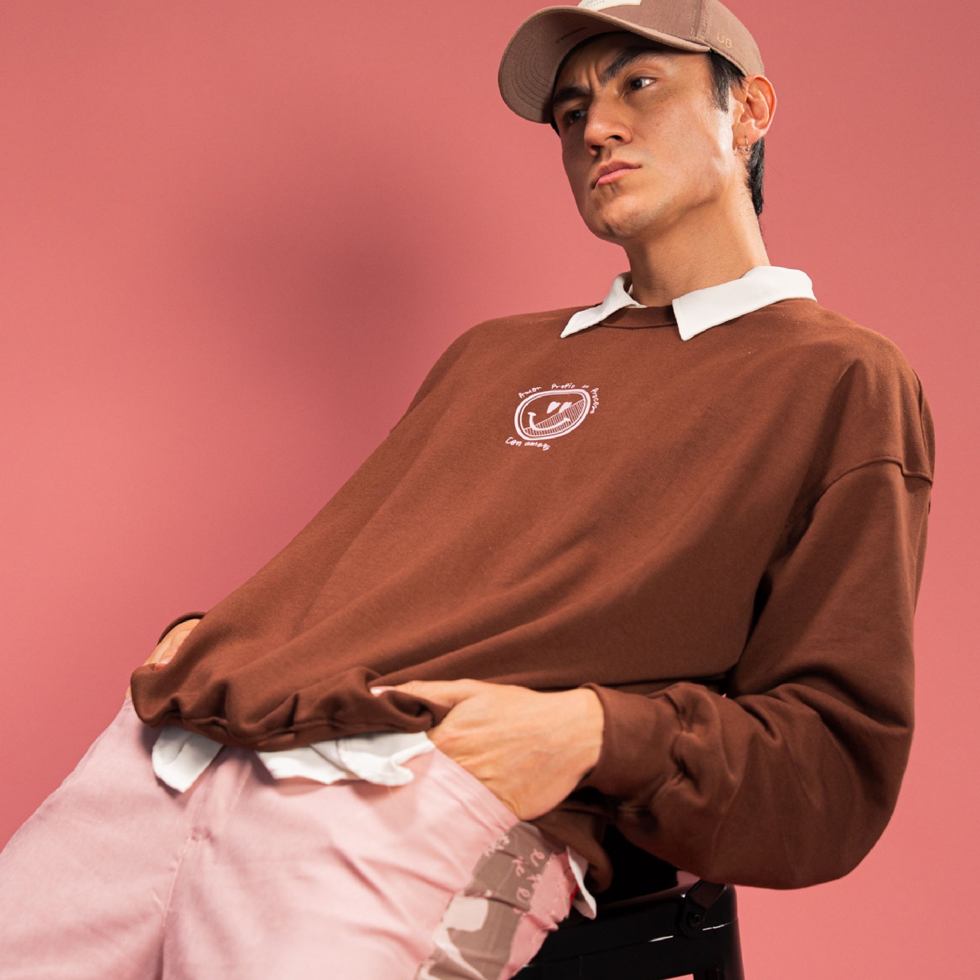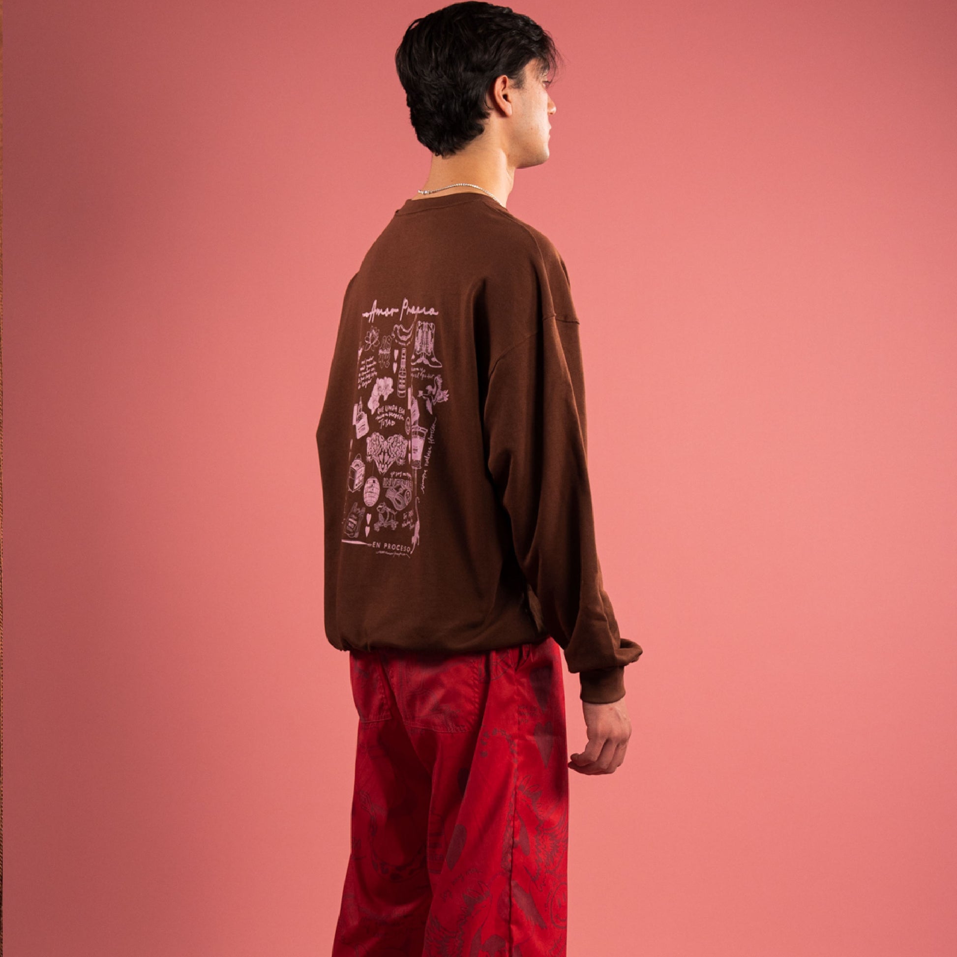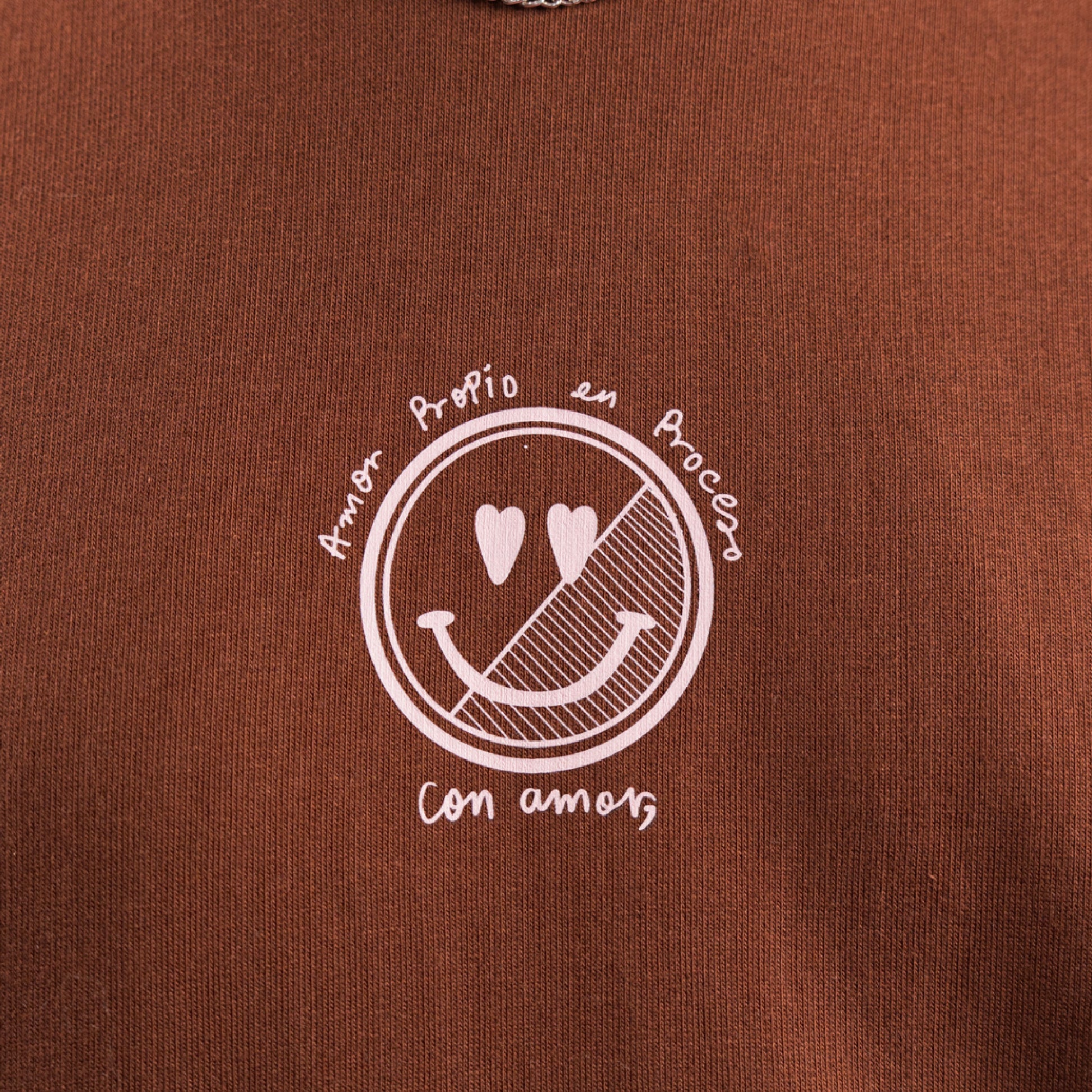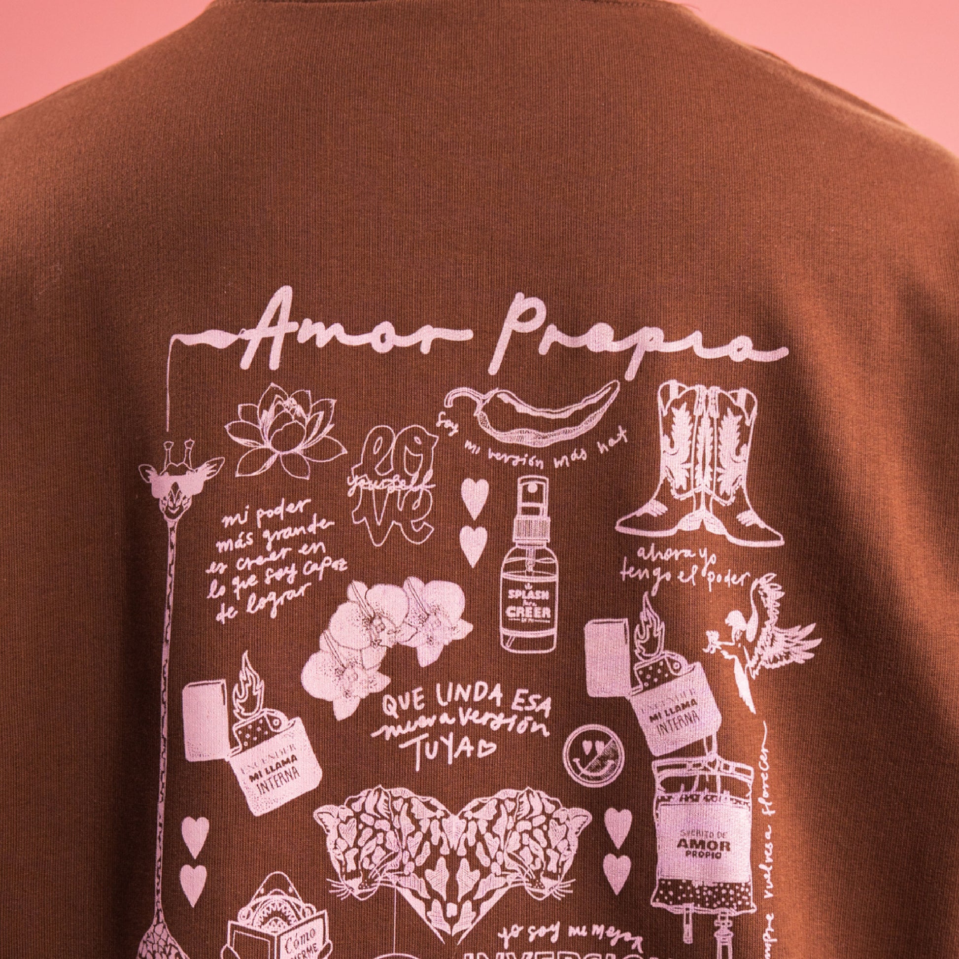 Cuello redondo color Café con logo estampado adelante en el pecho y atrás diseño de la colección Rosado. Viene con marquilla exterior en el frente abajo muy fácil de combinar con toda nuestra colección. Hecha en Burda de gramaje medio.