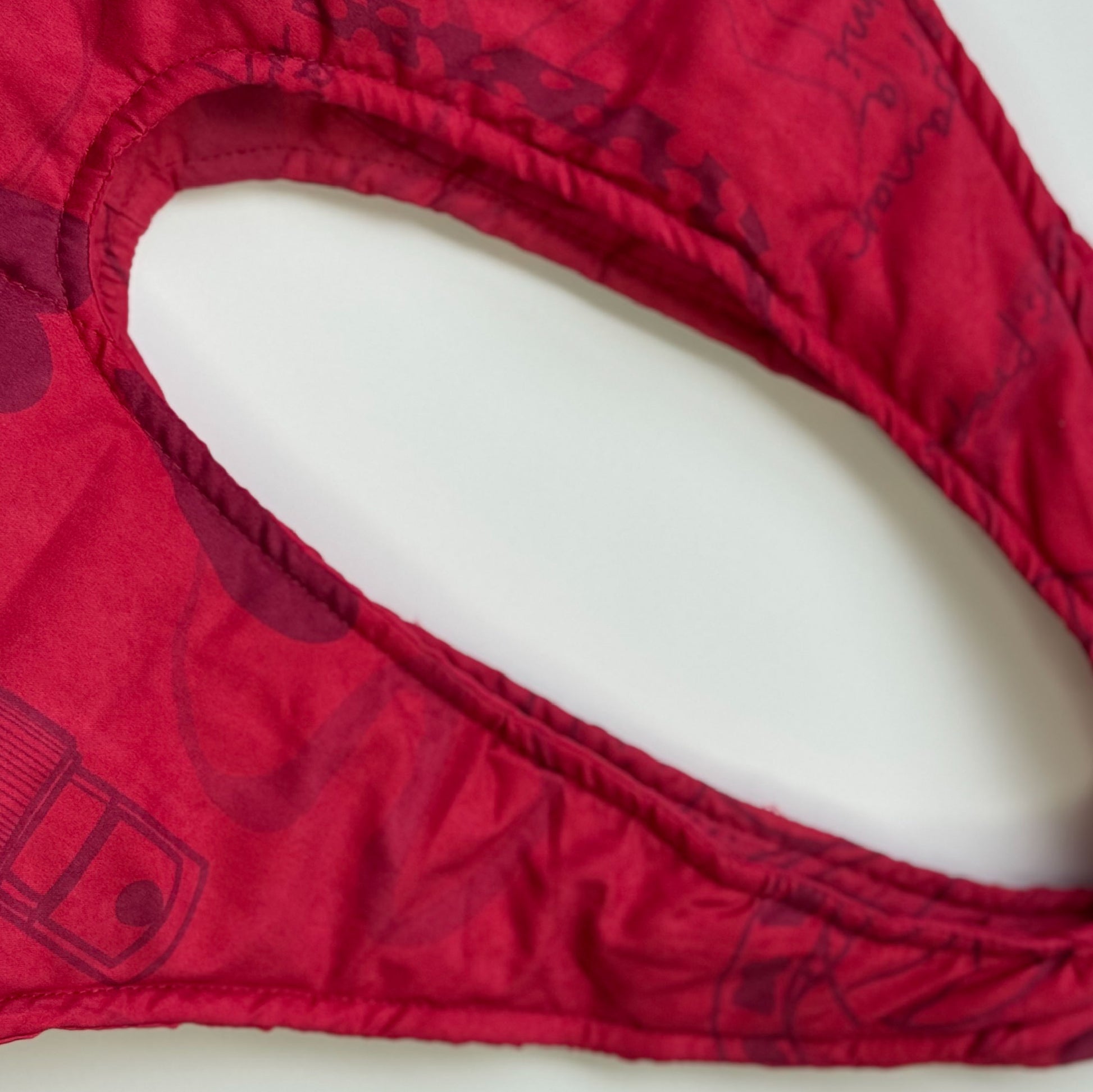 Nace de nuestro primer proyecto upcycling donde rescatamos más del 90% de una producción fallida. Con tela en acabado de piel de durazno y sublimado con nuestra carta de amor propia en rojo.